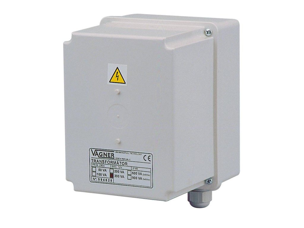 Určen pro podvodní světlomety do 200 W. Transformátory jsou umístěny v krabičce ze speciálního termo-odolného plastu - IP 65.